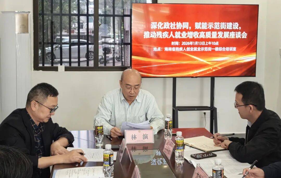 博鱼体育,博鱼体育官方网站,博鱼体育APP下载为深入贯彻《海南省“十四五”残疾人保障和发展规划》,进一步凝聚政社合力,破解残疾人就业创业发展难题,2026年1月13日上午,省残联在春天事业一条街综合培训室组织召开“深化政社协同,赋能示范街建设,推动残疾人就业增收高质量发展”座谈会。省残联党组成员、副理事长林演出席并讲话,省残疾人劳动就业服务中心、琼山区残联、国兴街道办及相关社区负责共同参会,围绕示范街区可持续运营与残疾人就业增收路径展开深入交流。